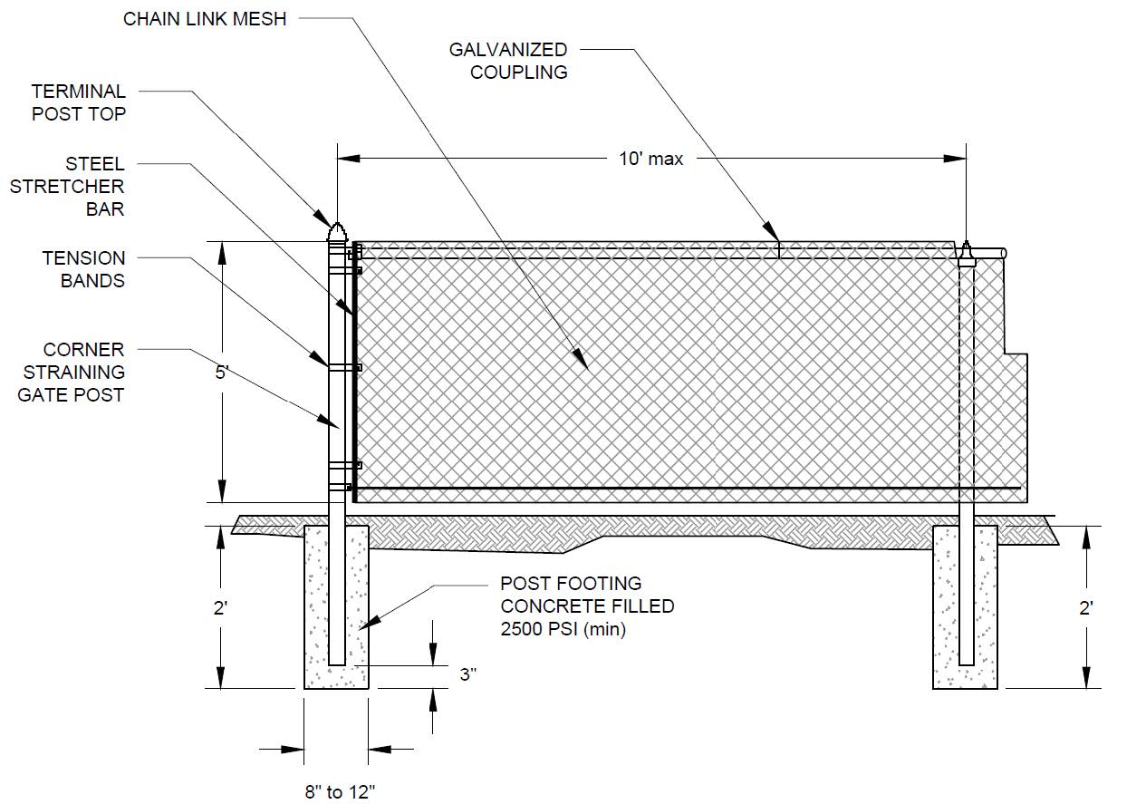 16 gauge galvanized steel terminal post is part of the fence framework and helps support the chain link fabric.
